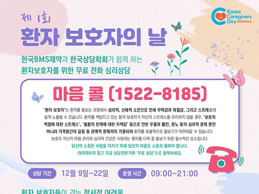 (유)한국비엠에스제약(대표 김진영)은 ‘환자보호자의 날’을 맞아 최근 진행한 일반인 대상 ‘환자보호자 인식조사’결과를 발표했다. 이번 설문조사는 만 20~59세 1,000명의 일반 국민을 대상으로 환자 보호자에 대한 인식, 중증ㆍ경증 환자 보호자 실태 파악 및 경험 유무에 따른 인식을 확인했다. 조사에는 환자보호자 경험이 있는 589명과 환자보호자 경... 내용 보기